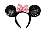 Join Mickey this year as his love interest Minnie Mouse with the help of our deluxe Disney Minnie Ears Headband with Pink Bow. These Minnie Mouse ears are attached to a wide, sturdy headband and are made of sequined velvet. These costume ears feature a feminine pink satin bow to give you a Clubhouse Minnie appearance. Add white character gloves and a pink dress to complete your Minnie Mouse Halloween costume. One size fits both kids and adults. This is an officially Licensed Mickey MouseTM product by ©Disney.