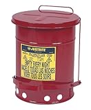 Justrite 9100 Galvanized Steel Oily Waste Safety Can with Foot Lever, 6 Gallons Capacity, Red