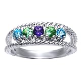 0.75 Ct Blue Topaz Peridot and Amethyst Silver Ring