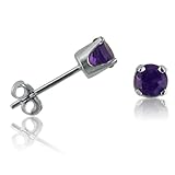 14K White Gold Round Amethyst Stud Earrings (4 mm .40ct tw)