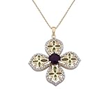 18k Yellow Gold Plated Sterling Silver Africa Amethyst and Peridot and Diamond Accent Cross Shaped Pendant Necklace, 18"
