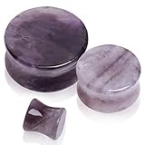 Double Flared Natural Amethyst Semi-Precious Stone Saddle Plugs -0g (8mm) - Sold as a Pair