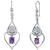 Center Stone: 2 Pieces Genuine Amethyst, Oval Shape 7 x 5 mm, 1.50 carats total weight, Royal Purple Hue with Brilliant Sparkle. Side Stones: 14 pieces super Sparkling Machine Cut White Cubic Zirconia. Earrings: 4.90 grams, Pure Sterling Silver Rhodium Finish with .925 stamp, Earrings feature Fish Hook posts, exceptional Design, Craftsmanship and Rhodium finishing. Perfect gift for Mothers Day, Birthdays, Valentines Day, Graduation, Christmas or just about any other occasion. Money Back Guarantee. Includes a Signature Gift Box & style SE7258