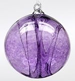 These are hand blown art glass, crafted by artisans in Canada. Witch Balls were very popular in 18th Centruy England, but their actual origin is thought to be much older. For well over 300 years, hollow glass spheres have been hung in windows to ward off witch spells, evil spirits and ill fortune. Hanging these decorative balls in the window is thought to tantalize evil spirits which may be threatening a home's tranquility. The evil spirit is mesmerized by the ball's reflective beauty, and when the spirit touches the sphere, it is absorbed and trapped in the web-like strands of glass inside the ball. Because they are similar to the glass balls used by fishermen on nets, Witch Balls are also associated with many sea superstitions and legends. These hand blown art glass balls are made up of a beautiful mix of colors, and each one is unique and unlike any other in its combination of colors and patterns. The photos are just an illustration of one combination of the Amethyst ornament. These balls may vary a bit in size, with a diameter of 5 - 5-1/2 inches. They are available in other colors as well, please see our other listings to choose the one you like best. Hand blown in Canada.