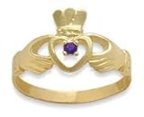 Ladies 10 Karat Yellow Gold Amethyst Claddagh Ring - 5.75