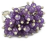- Have fun with our amethyst cluster ring that adds a touch of purple to any look. The ring is made of silver with opening at the base so it is adjustable to fit on any ring finger