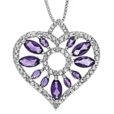 Sterling Silver Amethyst and Diamond Heart Pendant Necklace (0.13 cttw, I-J/I2-I3), 18"