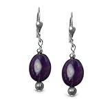 Big impact, small price - there's nothing basic about these beaded beauties. These amethyst drop earrings exude a peaceful calm that strengthen the spirit and put the focus on beauty - theirs and yours! Oval cabochons of polished amethyst stones dangle from sterling silver leverback closures and are capped by intricately ribbed silver beads at their ends. Take a deep breath and bathe in the tranquility these earrings impart. Measures 1-1/2" L x 3/8" W. *Note: stone color may vary from dark purple to light lavender hue. Proudly made in New Mexico, USA with fair labor. We do our part for the environment by crafting our jewelry from recycled genuine .925 sterling silver.