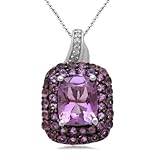 Sterling Silver and Amethyst with Black Rhodium Diamond Pendant Necklace, 18"