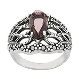 Sterling Silver Marcasite Filigree Amethyst Color Glass Ring, Size 7