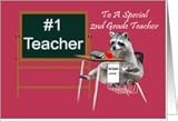 Teacher Appreciation To 2nd Grade Teacher, Raccoon in school desk with books and apple Card